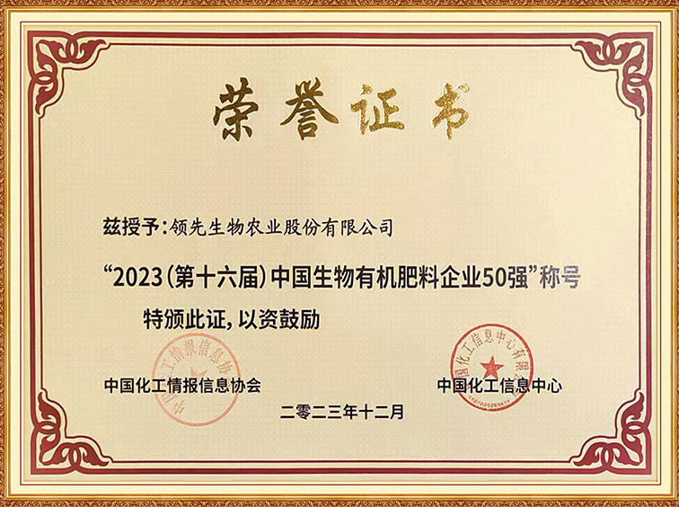 2023中國(guó)生物有機(jī)肥l料企業(yè)50強(qiáng)